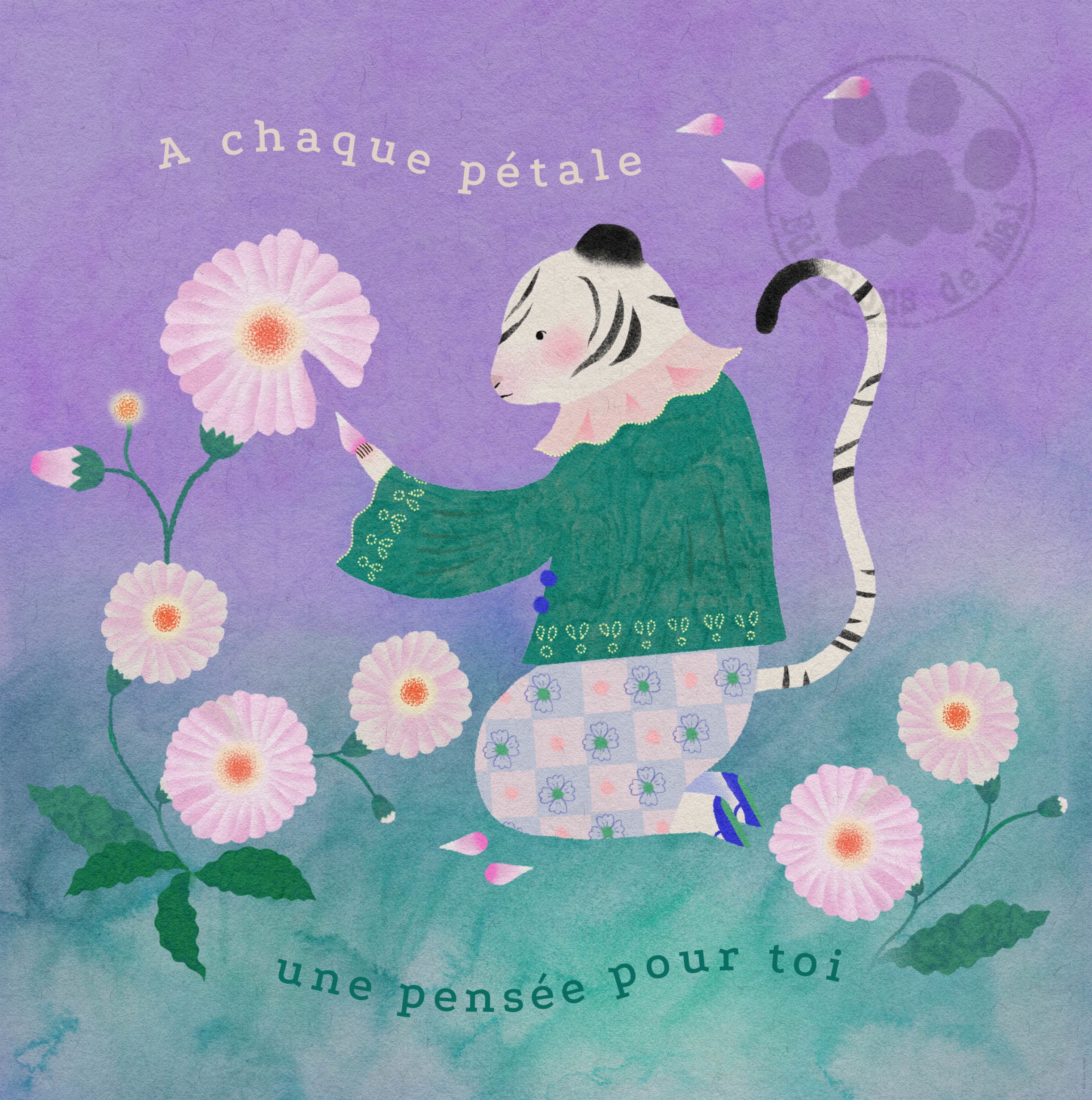 Postcard 12x12cm with selective varnish, supplied with blue envelope, printed in France with vegetable inks on paper from sustainably managed forests.
