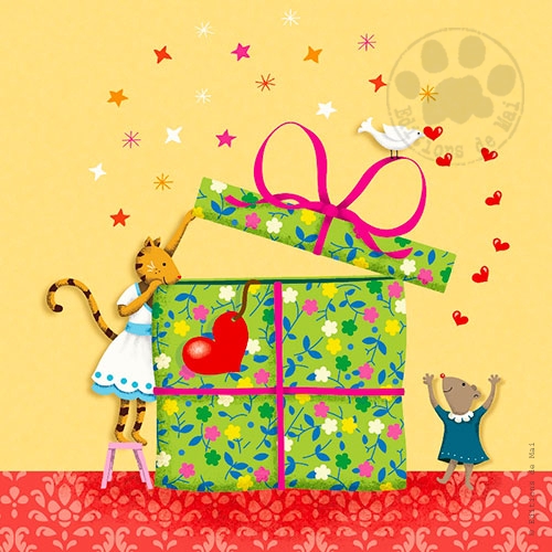Carte simple 14x14cm avec vernis sélectif, fournie avec enveloppe, imprimée en France avec des encres végétales sur des papiers issus de forêts gérées durablement.