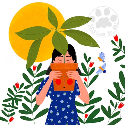 Postcard 12x12cm with selective varnish, supplied with blue envelope, printed in France with vegetable inks on paper from sustainably managed forests.