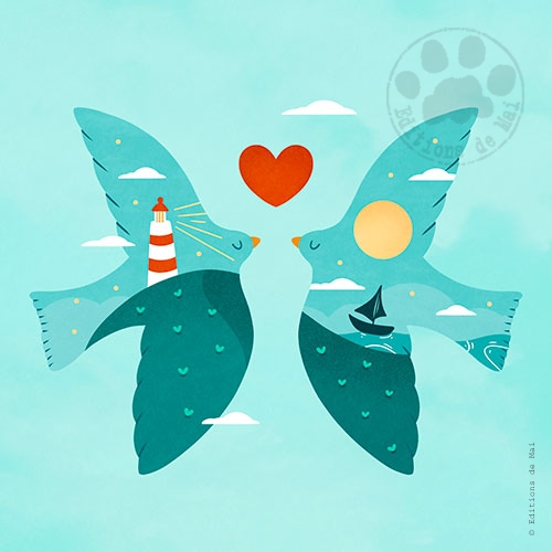 Postcard 12x12cm with selective varnish, supplied with blue envelope, printed in France with vegetable inks on paper from sustainably managed forests.