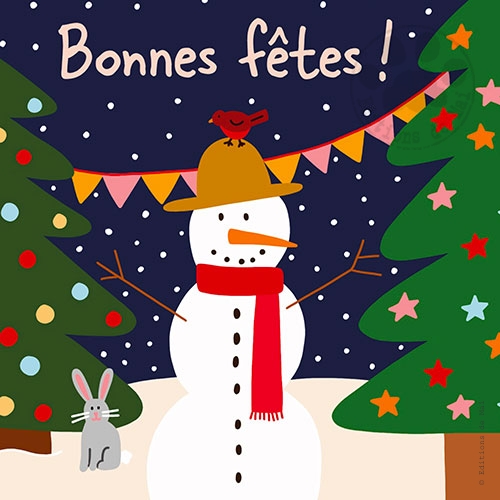 Postcard 12x12cm with selective varnish, supplied with blue envelope, printed in France with vegetable inks on paper from sustainably managed forests.