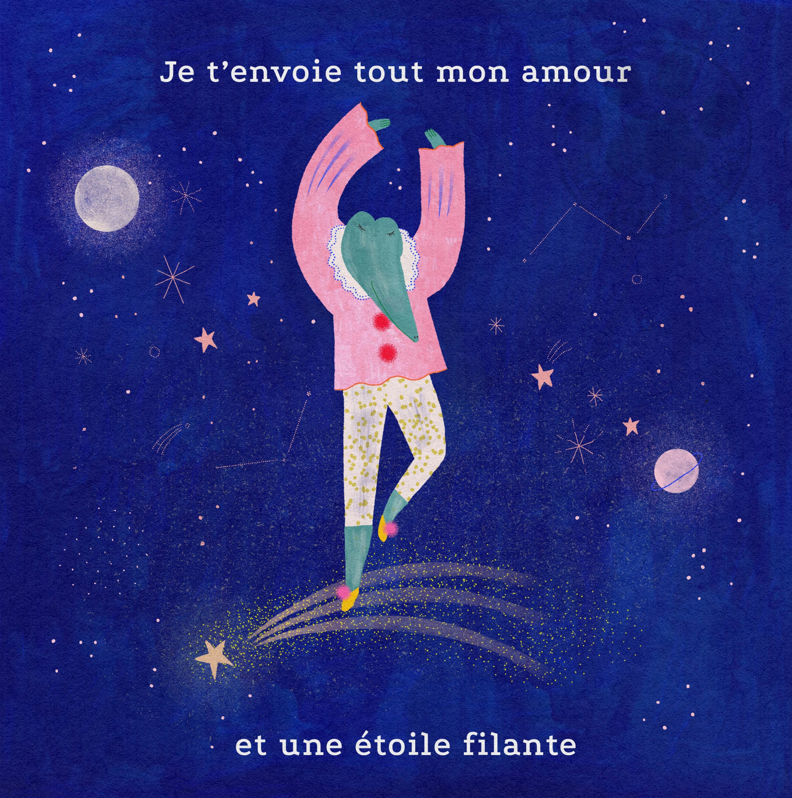 Postcard 12x12cm with selective varnish, supplied with blue envelope, printed in France with vegetable inks on paper from sustainably managed forests.