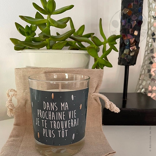 Bougie 100% cire de soja végétale naturelle, sans colorant, sans additif, sans paraffine, fabrication française, confectionnée main par un artisan cirier, 100% mèche coton non traitée et sans plomb, senteur Monoï, parfum de Grasse. Bougie accompagnée de son pochon en lin. Le verre et le pochon réutilisable = Zéro déchet. 32 heures de brûle