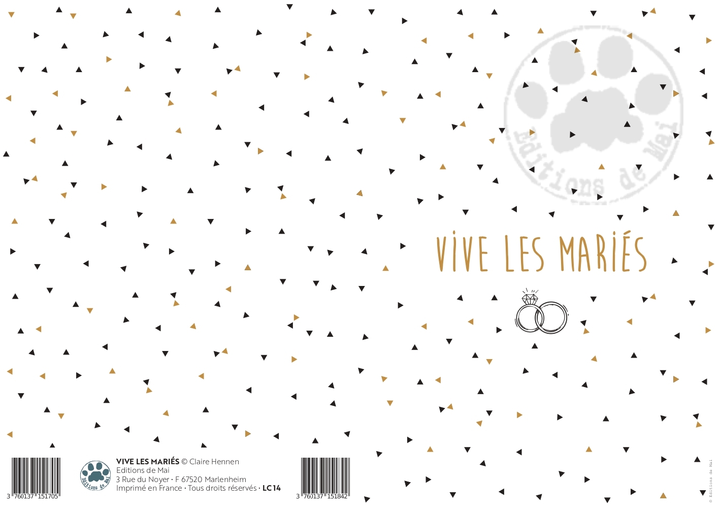 Double card 12×17 cm with gilding, supplied with envelope, printed in France using vegetable-based inks on paper from sustainably managed forests.